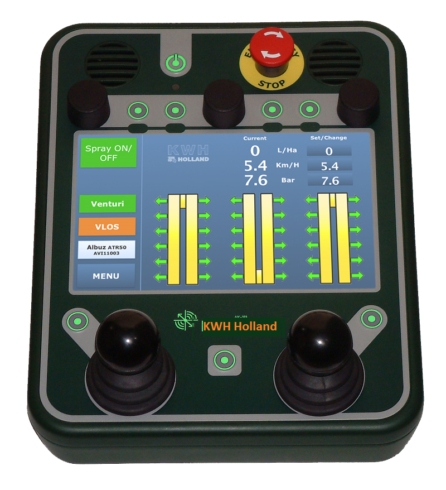 Het is al vol genoeg in uw tractorcabine. Daarom heeft KWH Holland zelf de touchscreen spuitcomputer ontwikkeld. De volledige besturing en spuitcomputer onder je vingertoppen. Ergonomisch en eenvoudig opgezet met een kleurmonitor en een touchcreen display. Met één hand kun je de gehele machine instellen, aanpassen en in- en uitklappen. Dankzij de geïntegreerde tankmeter ziet u meteen het tankvolume, werkdruk, snelheid en de afgifte.